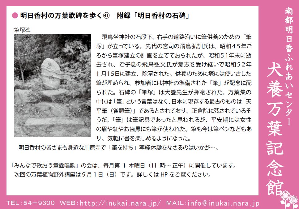 明日香村の万葉歌碑を歩く41明日香村の広報に毎月掲載している当館の記事を抜粋して掲載いたします。 シェアする: https://inukai.nara.jp/wp-content/uploads/2024/06/manyokahi39.jpg 1054 1515 ait@kagitti1.xsrv.jp http://inukai.nara.jp/wp-content/uploads/2014/11/title_jpn1.png ait@kagitti1.xsrv.jp2024-08-24 23:58:352024-08-26 09:48:06明日香村の万葉歌碑を歩く41