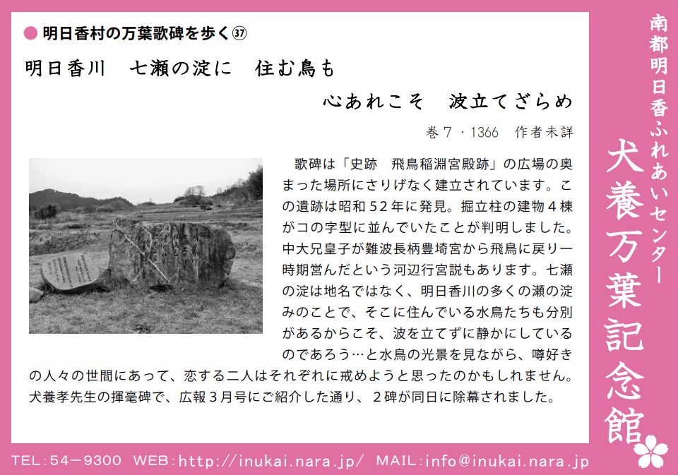 明日香村の万葉歌碑を歩く37明日香村の広報に毎月掲載している当館の記事を抜粋して掲載いたします。 シェアする: https://inukai.nara.jp/wp-content/uploads/2024/06/manyokahi39.jpg 1054 1515 ait@kagitti1.xsrv.jp http://inukai.nara.jp/wp-content/uploads/2014/11/title_jpn1.png ait@kagitti1.xsrv.jp2024-04-30 09:00:142025-04-02 23:10:51明日香村の万葉歌碑を歩く37
